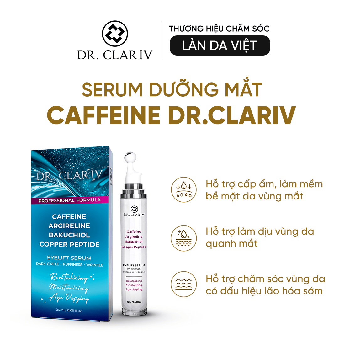Dr. Clariv Eyelift Serum là tinh chất dưỡng da chuyên biệt cho vùng mắt, giúp cải thiện rõ rệt các vấn đề như bọng mắt, quầng thâm, nếp nhăn và da không đều màu.