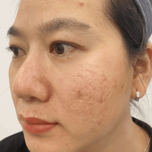 Chị bị sẹo từ hồi dậy thì, trước đây cũng từng đi điều trị nhưng chỉ hết mụn thôi, còn sẹo rỗ thì vẫn còn nguyên.Sau lần đầu làm, chị thấy cải thiện khoảng 70%.
